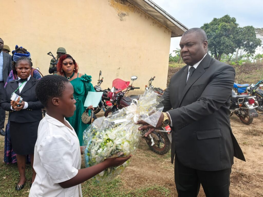 Governor’s Representative, SDO Nguia, was received with a Bouquet on Arrival at the Ceremonial Ground